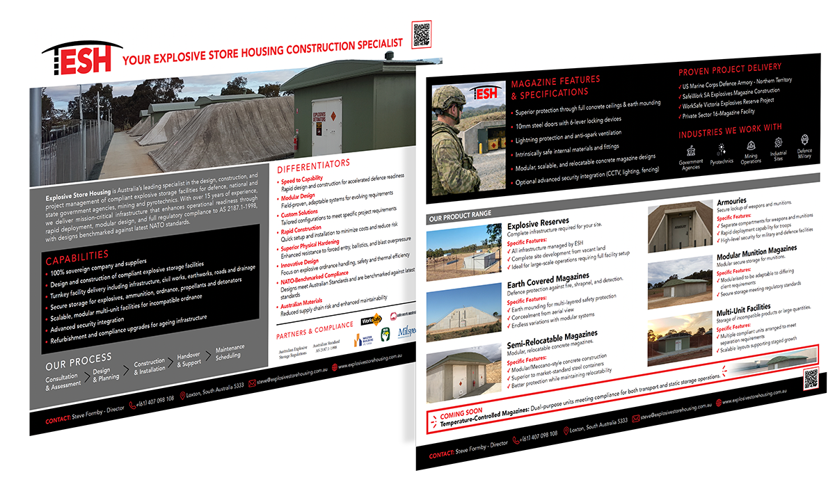 Ahead of an important industry event, Explosive Store Housing (ESH) needed more than a visual refresh. Operating within the highly regulated defence and construction sectors, ESH delivers compliant, purpose-built explosive storage facilities across Australia. Their technical capability was strong. Their brand and digital presence did not yet reflect that strength.